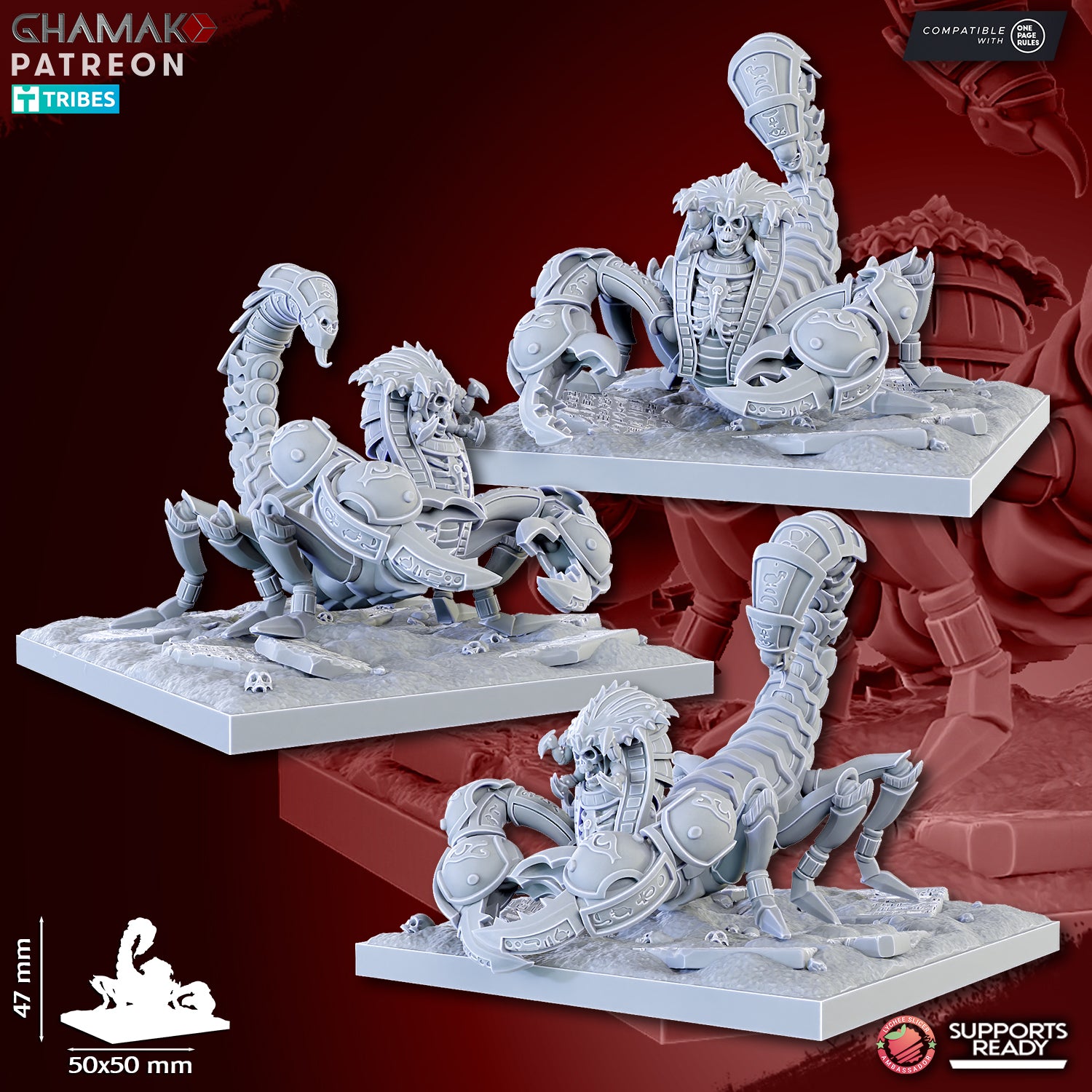 This kit contains 3 Undead Scorpions with custom resin bases.