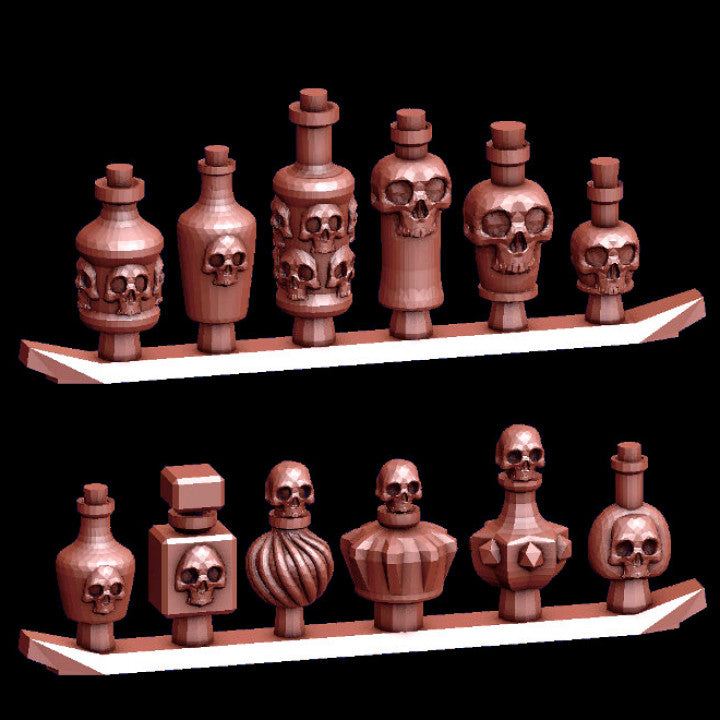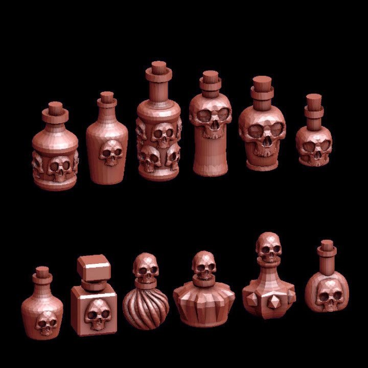 This kit contains 12 Bottles with a Skull design.